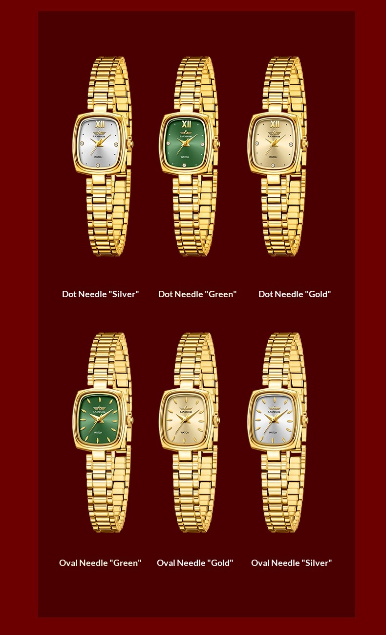 Colors: Women's NS-G6 all-gold, with diamond embellishments and a green dial; NS-G6 all-gold, with a green dial and engraved markers; Women's NS-G6 all-gold, accented with diamonds and a white mother-of-pearl dial; Women's NS-G6 all-gold, accented with diamonds; Women's NS-G6 all-gold, featuring a burgundy dial and engraved markers; Women's NS-G6 all-gold with personalized engraving; Women's NS-G6 all-gold with a white mother-of-pearl dial