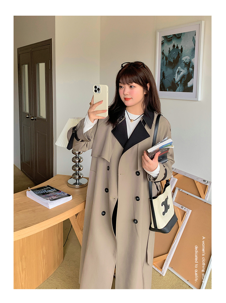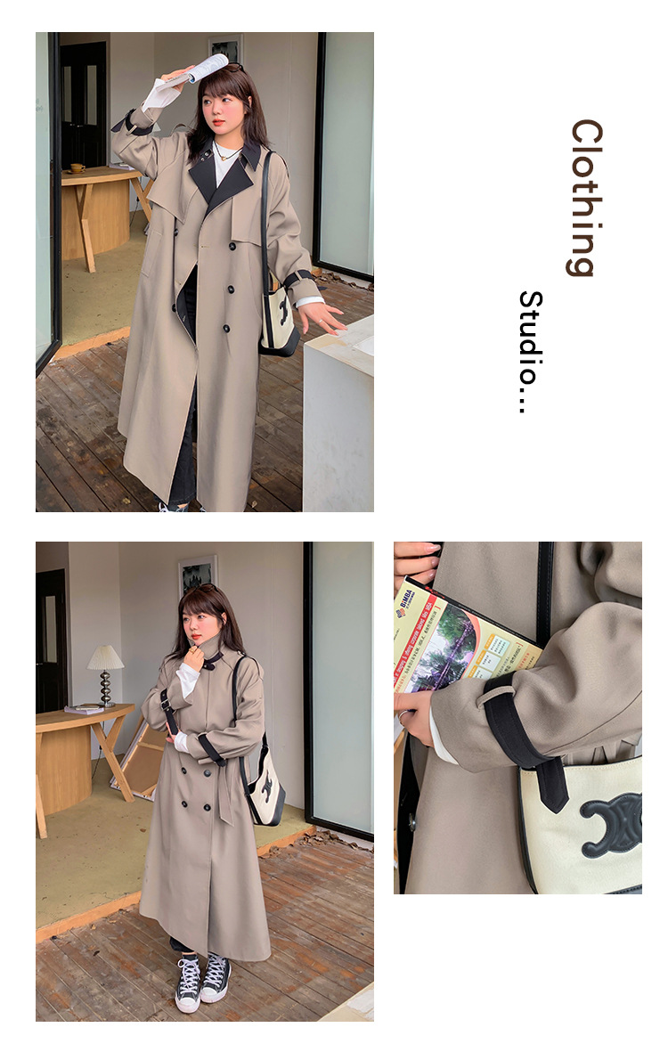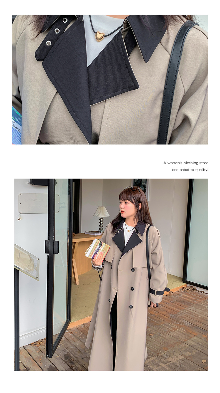 Retro Commuter-Style Mid-Length Colorblock Loose Coat