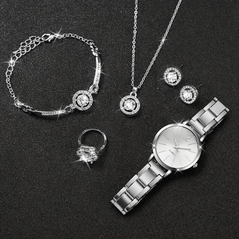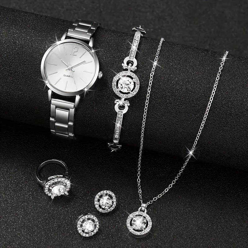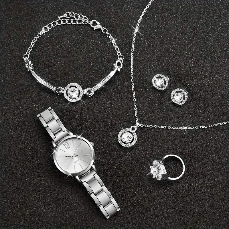Watch x1pc +Ring x1pc +Necklace x1pc +Bracelet x1pc+Earrings x1pairs