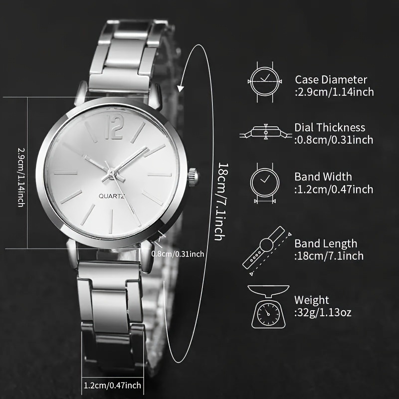 Small Silver Dial With Delicate Steel Strap, Five-piece Set For Women